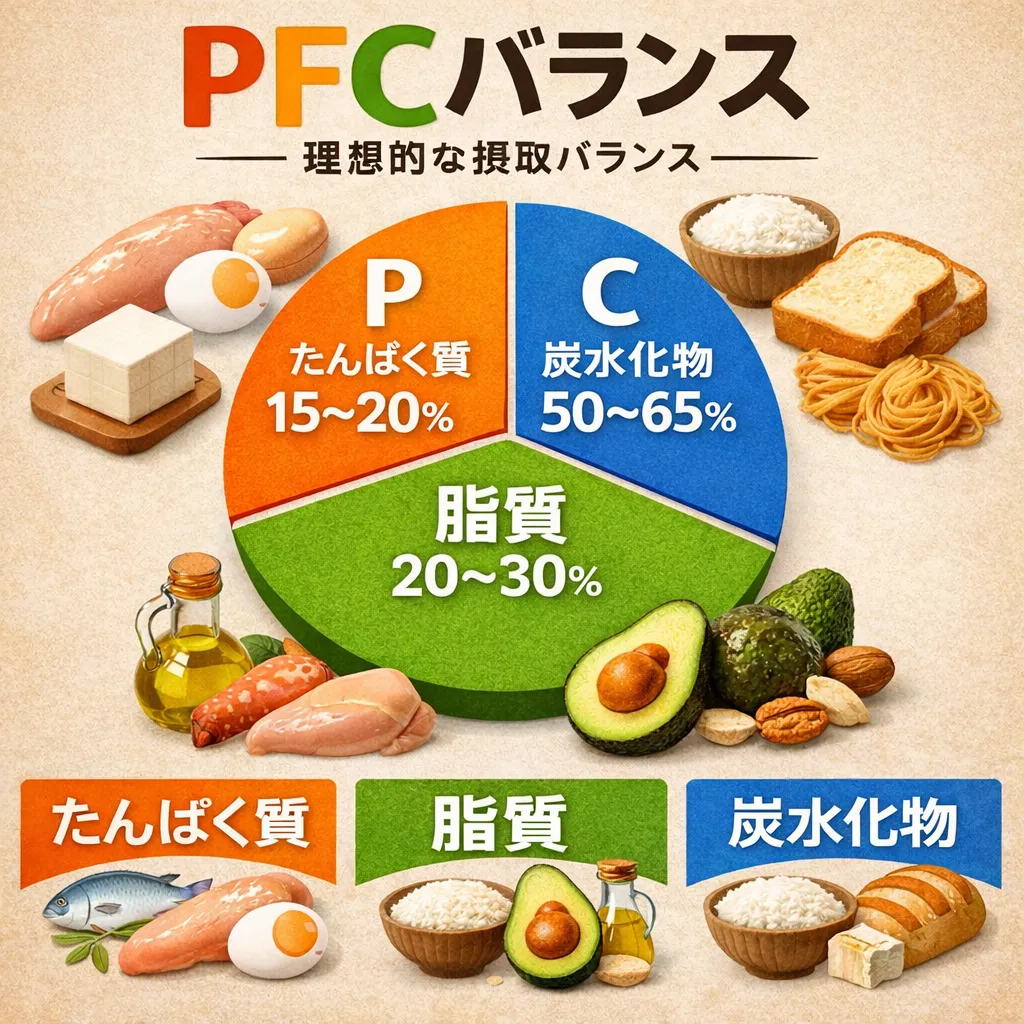 ただし、極端なPFCバランスの変更やカロリー制限は、エネルギー不足やリバウンドの原因になるため、必ず基礎代謝量を下回らない範囲で調整することが大切です。