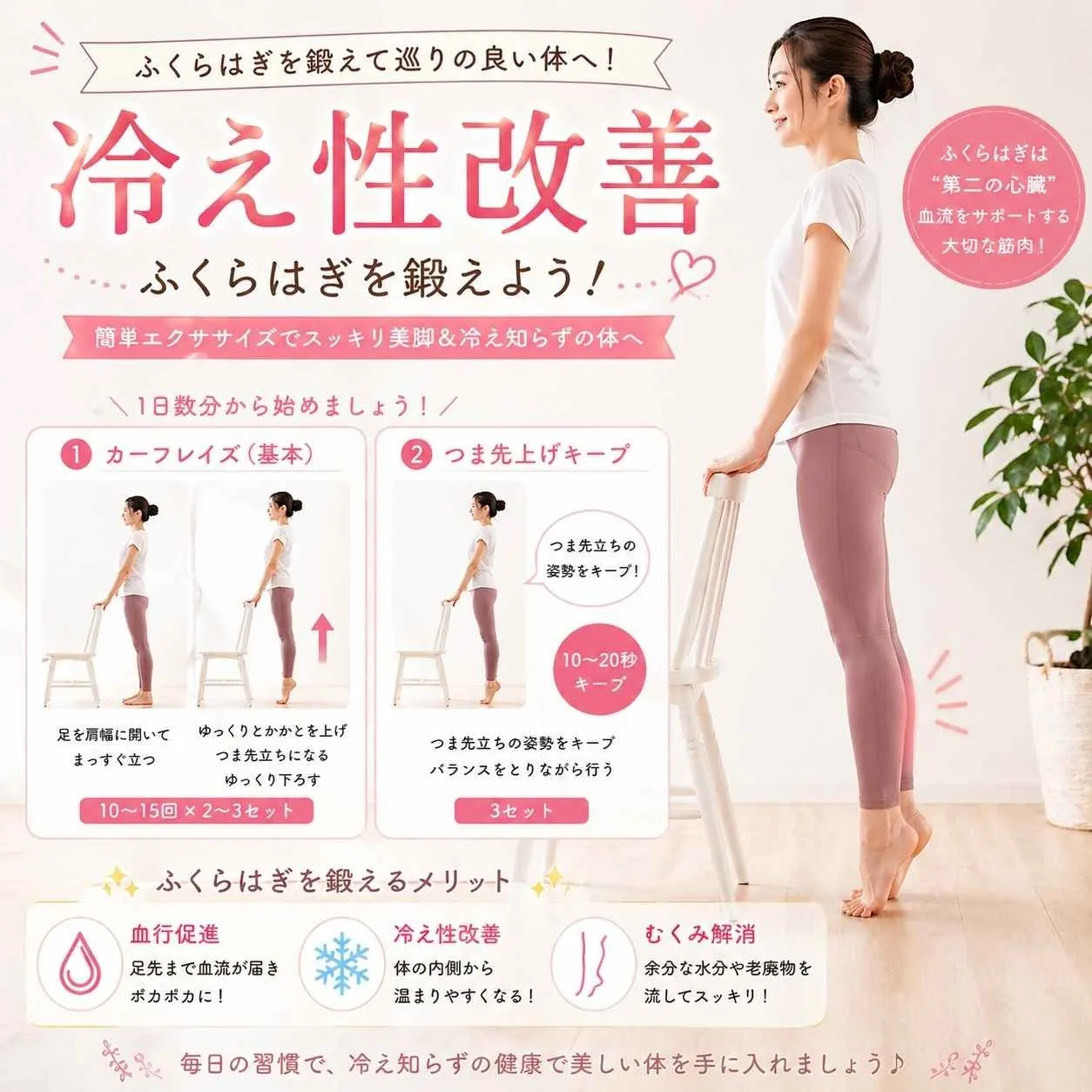 - ふくらはぎの筋力アップ → 血流促進・冷えにくい
